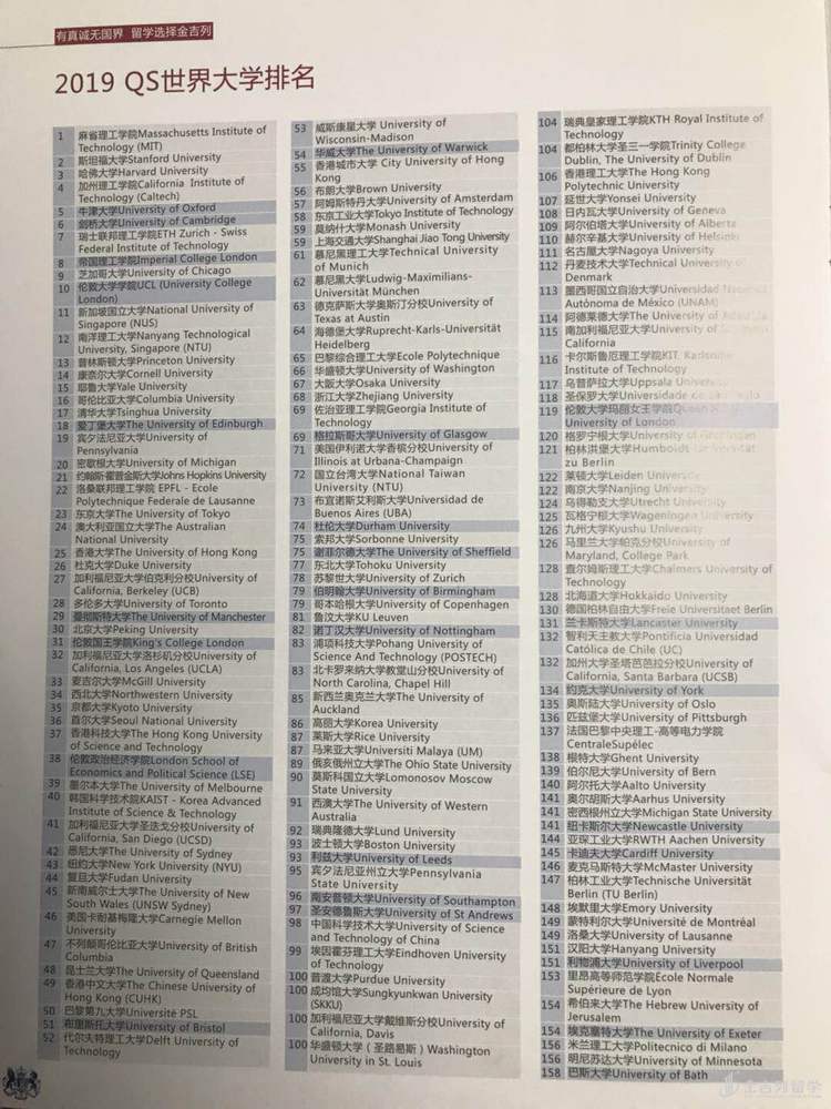 最新的2019年世界QS排名新鲜出炉,