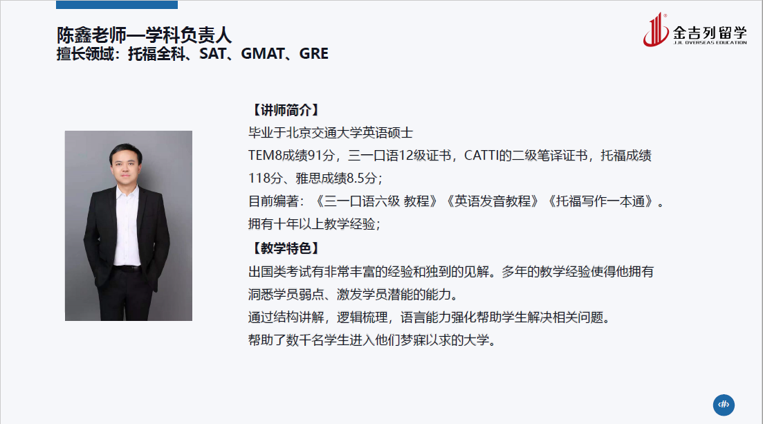 金吉列目前面对自己的学生也有相关的雅思托福精品培训: