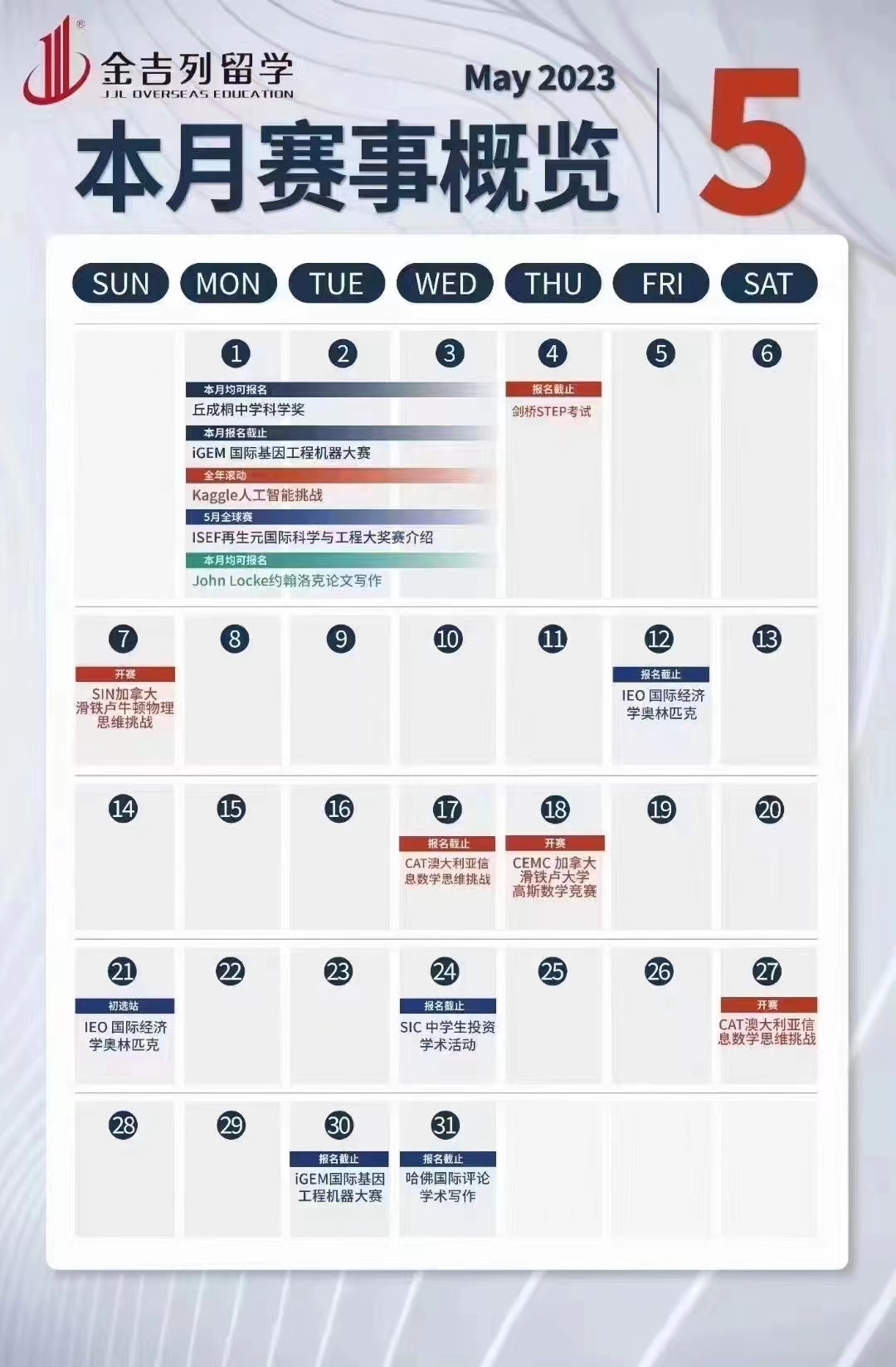 作为软性背景中的内容之一,竞赛获奖无疑可以为竞争名校助力,以下是五月赛事概览:
