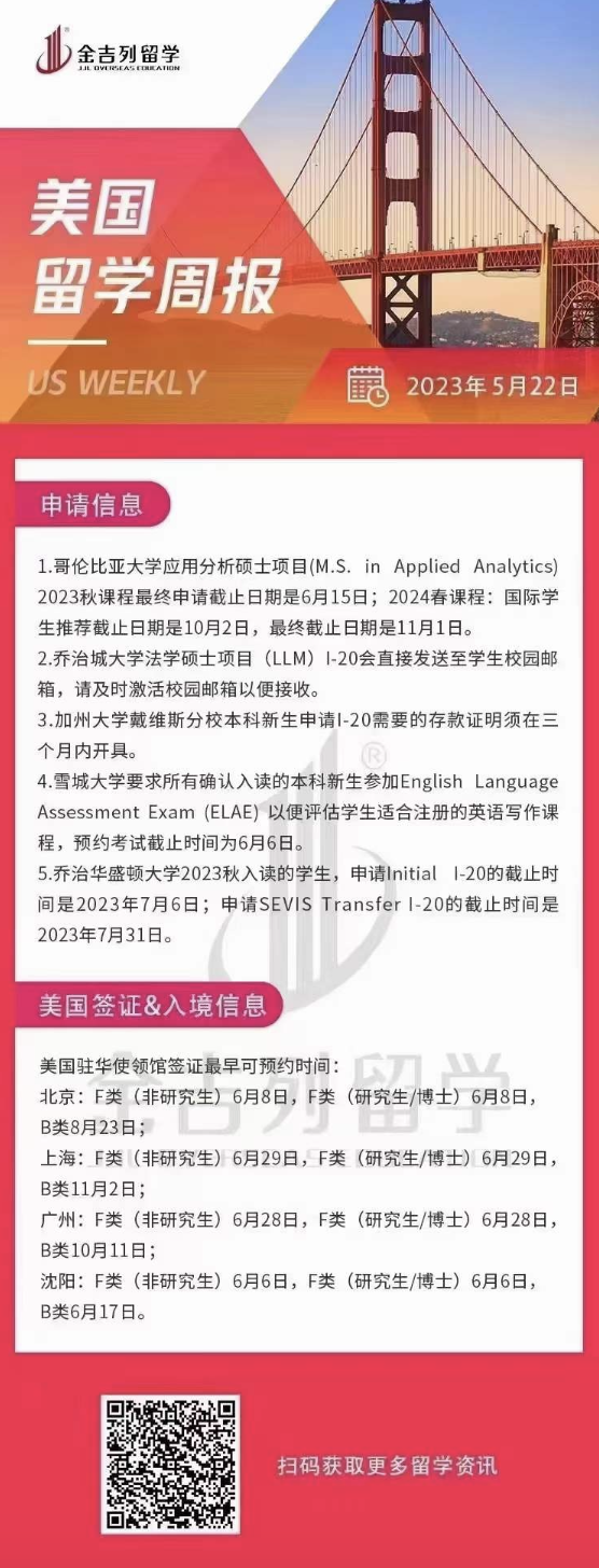 5.乔治华盛顿大学2023秋入读的学生,申请Initial 1-20的截止时间是2023年7月6日,申请SEVIS Transfer I-20的截止时间是2023年7月31日。