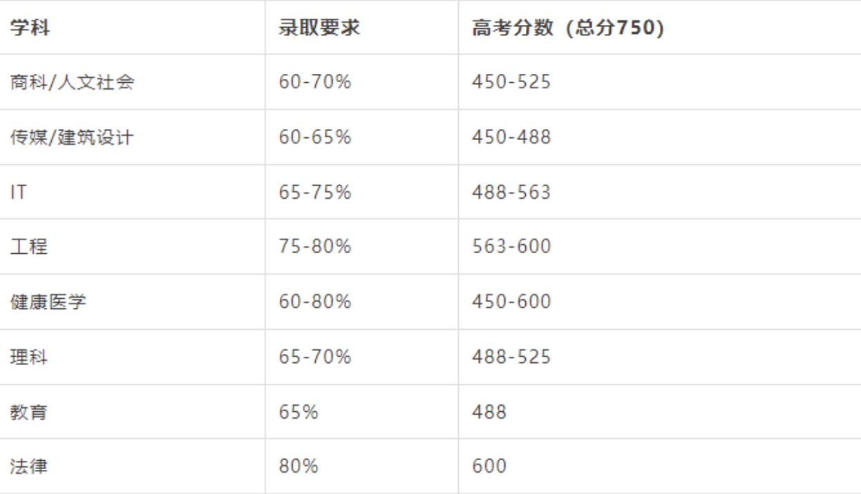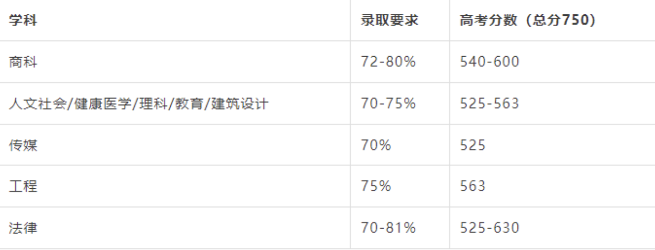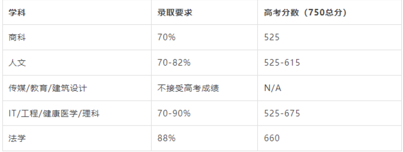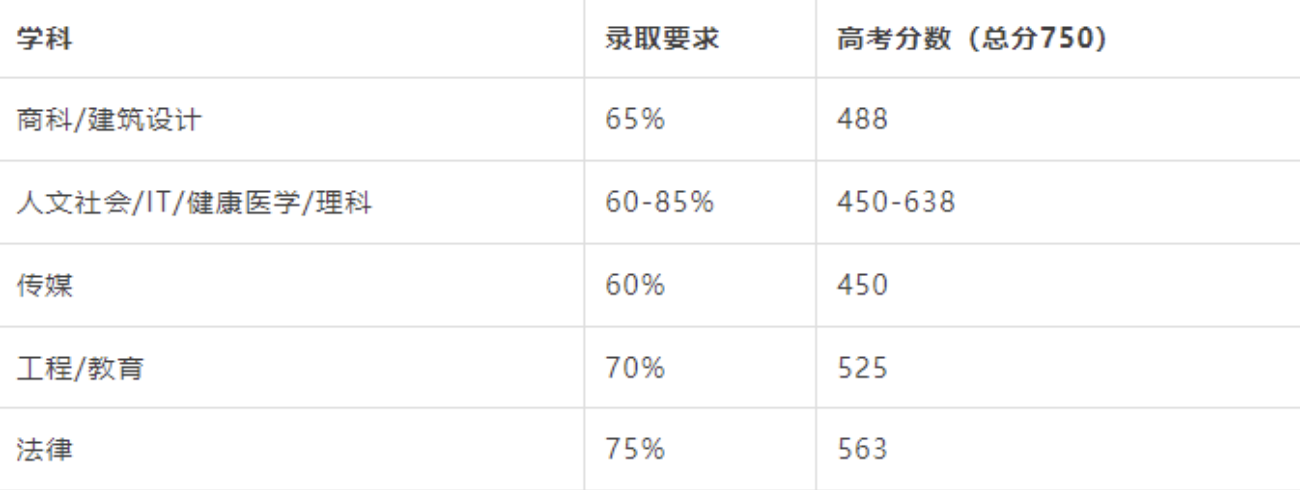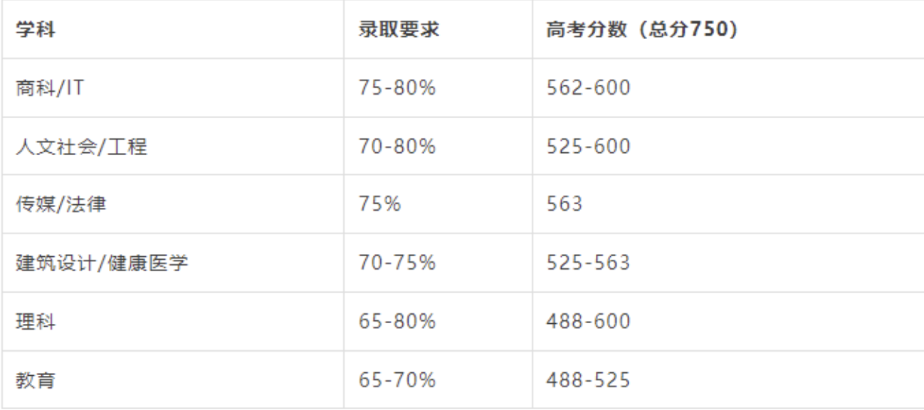 最低当地高考总分的67.5%以上(相当于ATAR 75的课程);