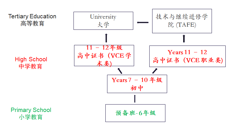 澳大利亚的高中根据办学机构类型不同,可分为公立中学和私立中学。中小学教育共13年,其中初中学制3-4年,为7-10年级,高中学制两年,为11、12年级。
