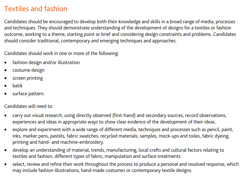 以CAIE考试局IGCSE艺术学科大纲为例, 纺织品设计专业主要学习以下内容: