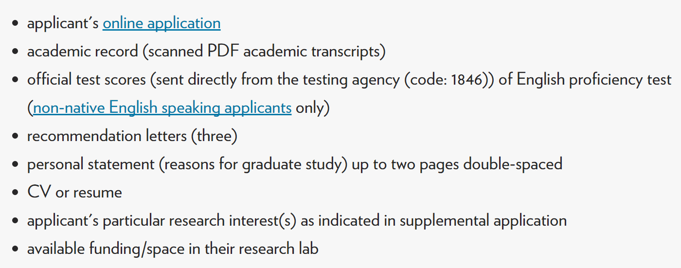 录取建议仅由监督实验室的教员决定。最终录取由研究生院决定。