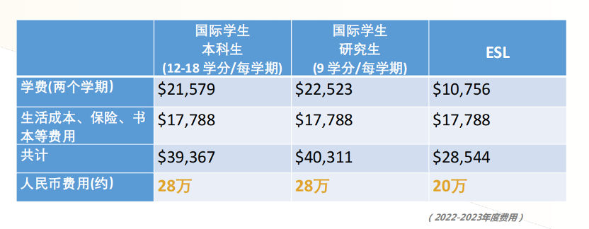 # 性价比高: 1 年留学总费用仅人民币 23 万