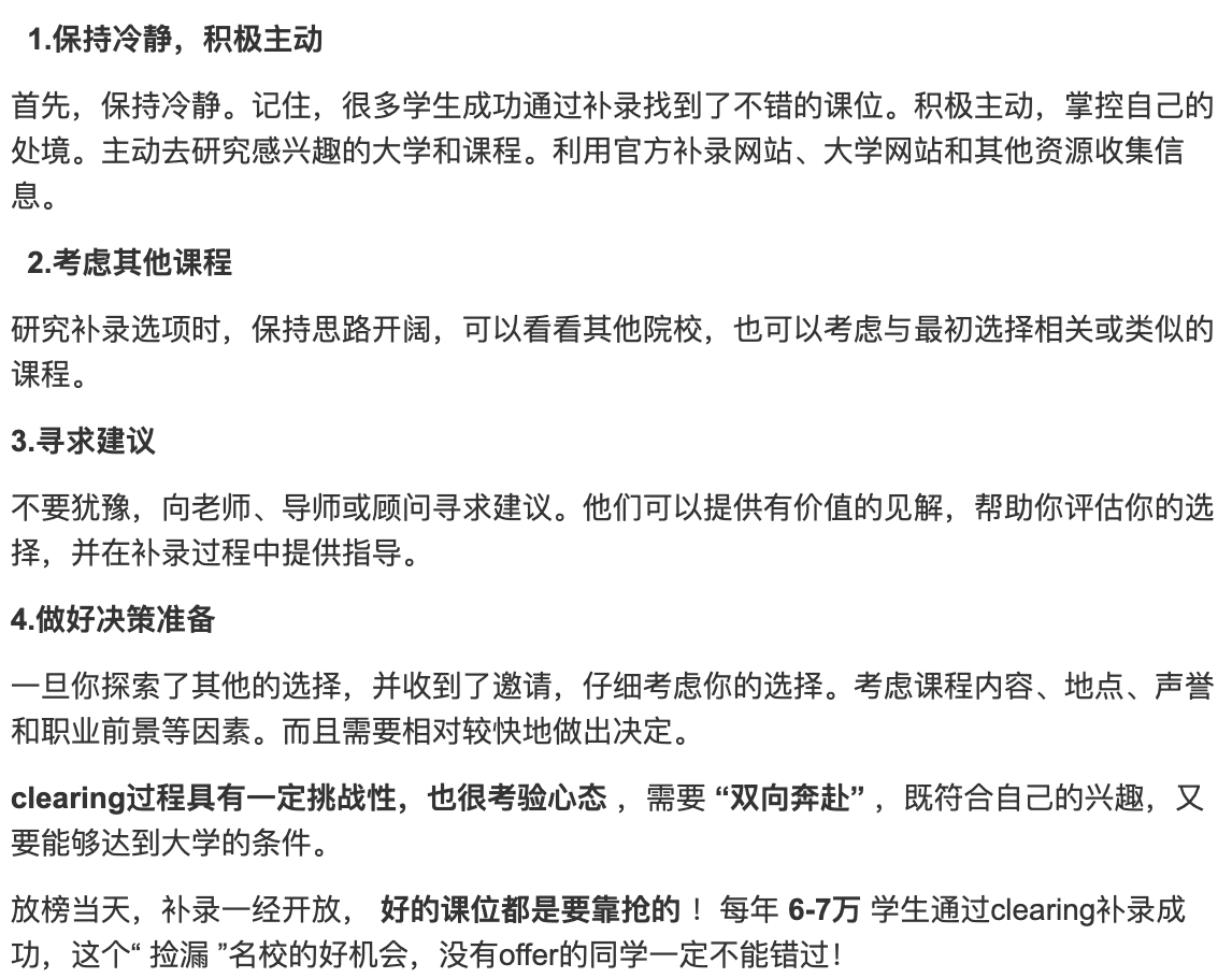 这二者是紧密相连的, 补录通常是为无法达到条件的学生提供一个“安全网” 。补录是一个允许大学在主要申请周期后填补剩余课程空缺的流程。这也是学生找到与自己兴趣和成绩相符的替代课程或院校的最好机会。
