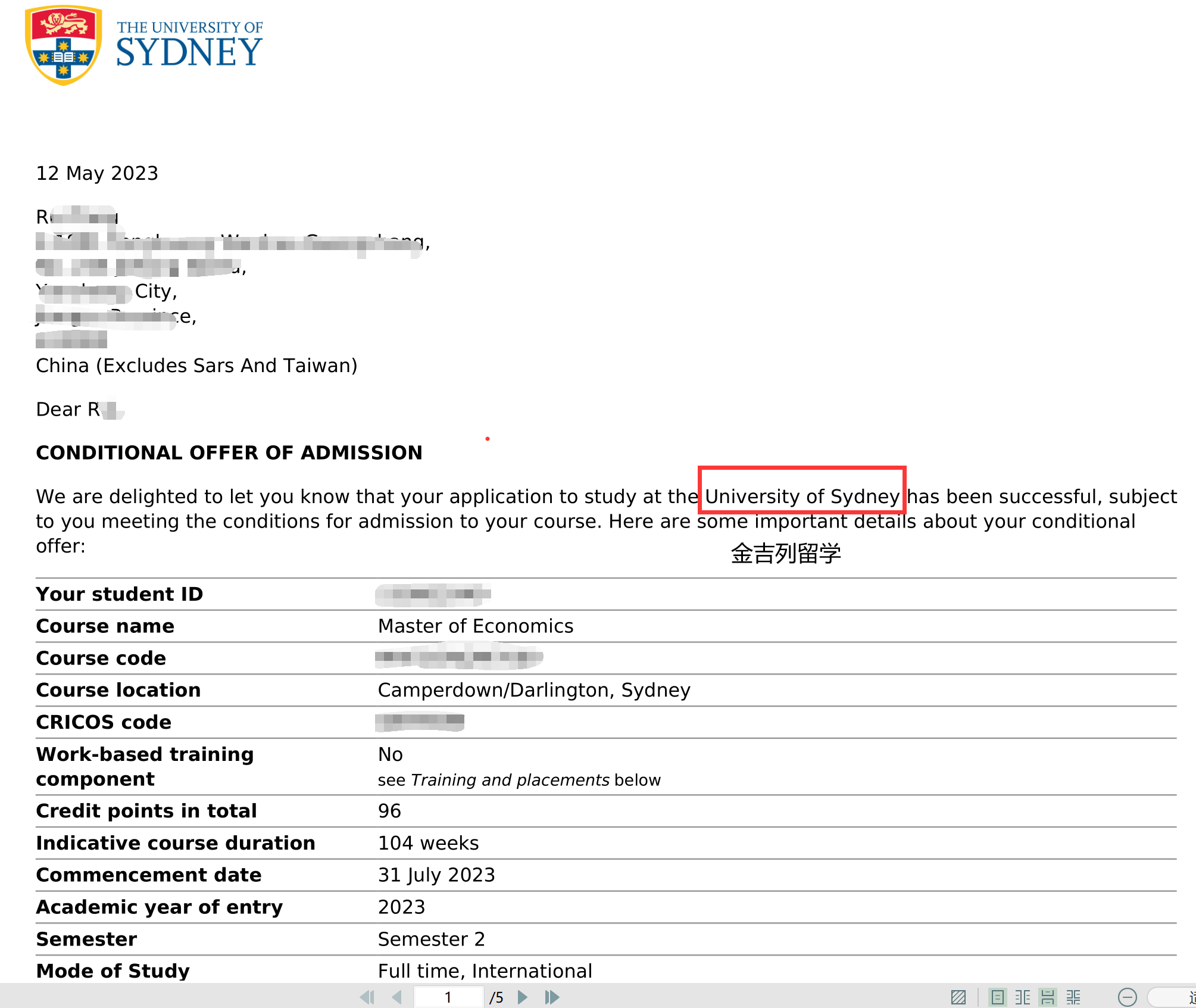 祝贺国内双非院校工科专业毕业的R同学,均分80,稳稳拿下悉尼大学经济学硕士的offer~
