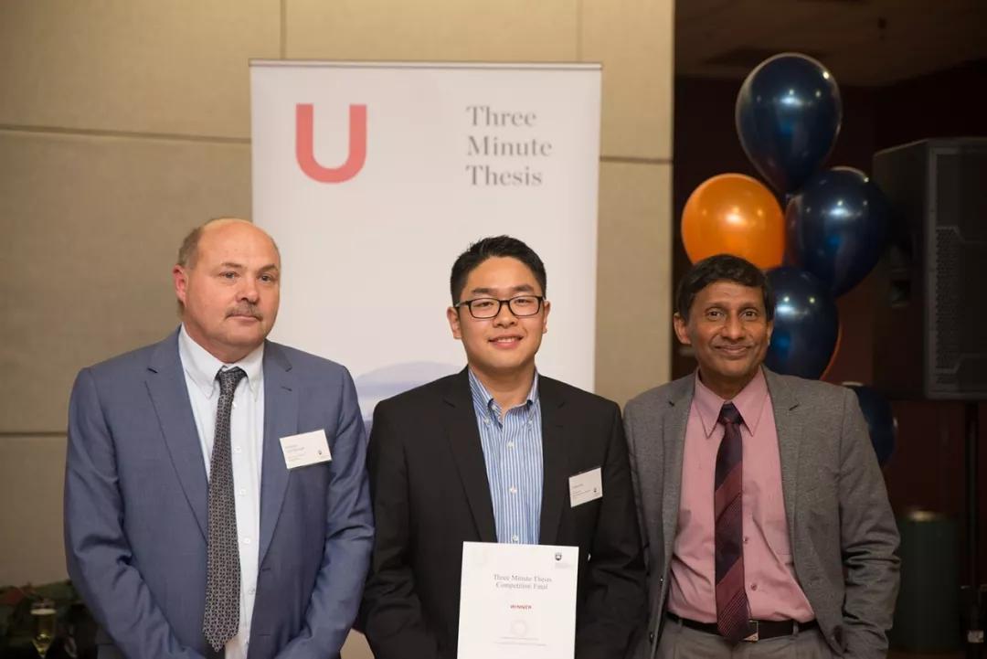 刘楚豪也获得了今年7月举行的伍伦贡大学三分钟论文(3MT)决赛的冠军。他获奖报告的标题是“为铁路地基找到最好的‘牛仔裤’”。