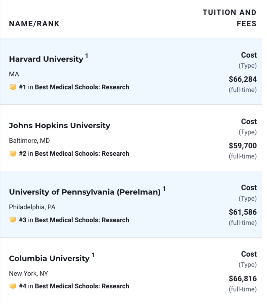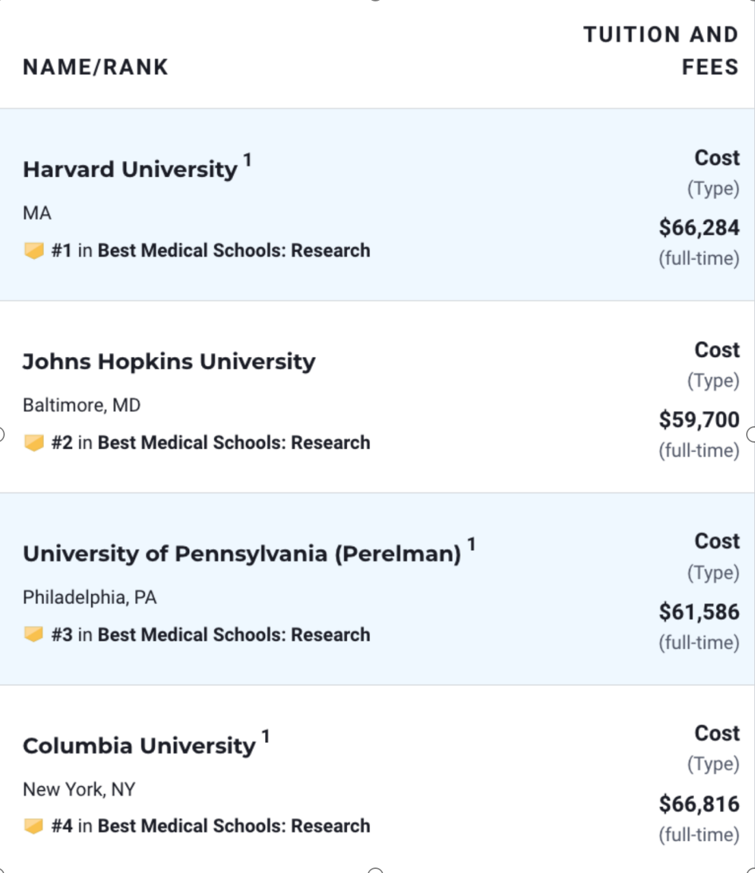 哈佛大学医学院再次荣登榜首;此前位于第3的JHU医学院上升到了第2名;宾夕法尼亚大学医学院则从第6上升到了第3名。