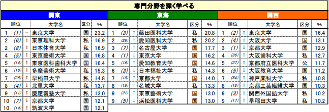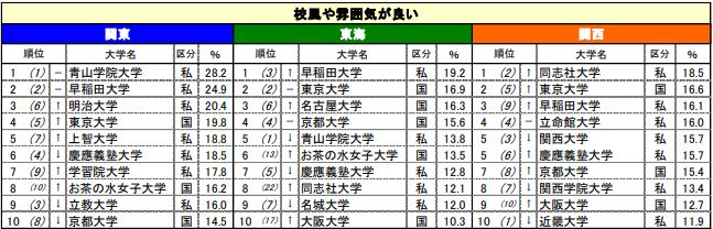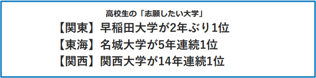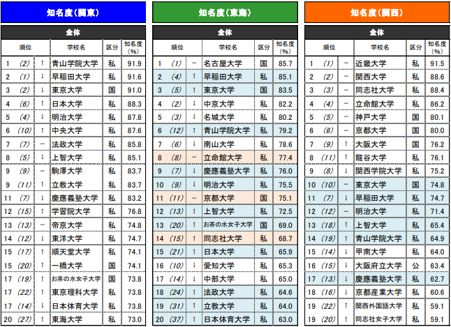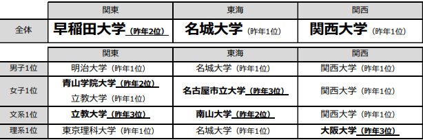●关东地区 (包含东京都、神奈川县、千叶县、琦玉县、茨城县、枥木县、群马县) 的早稻田大学时隔两年再次荣登榜首!