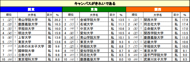 这个排名就不再局限区域了,关东、东海、关西三个地区的高中生进行大混选,真是刺激!下面让我们来看看结果: