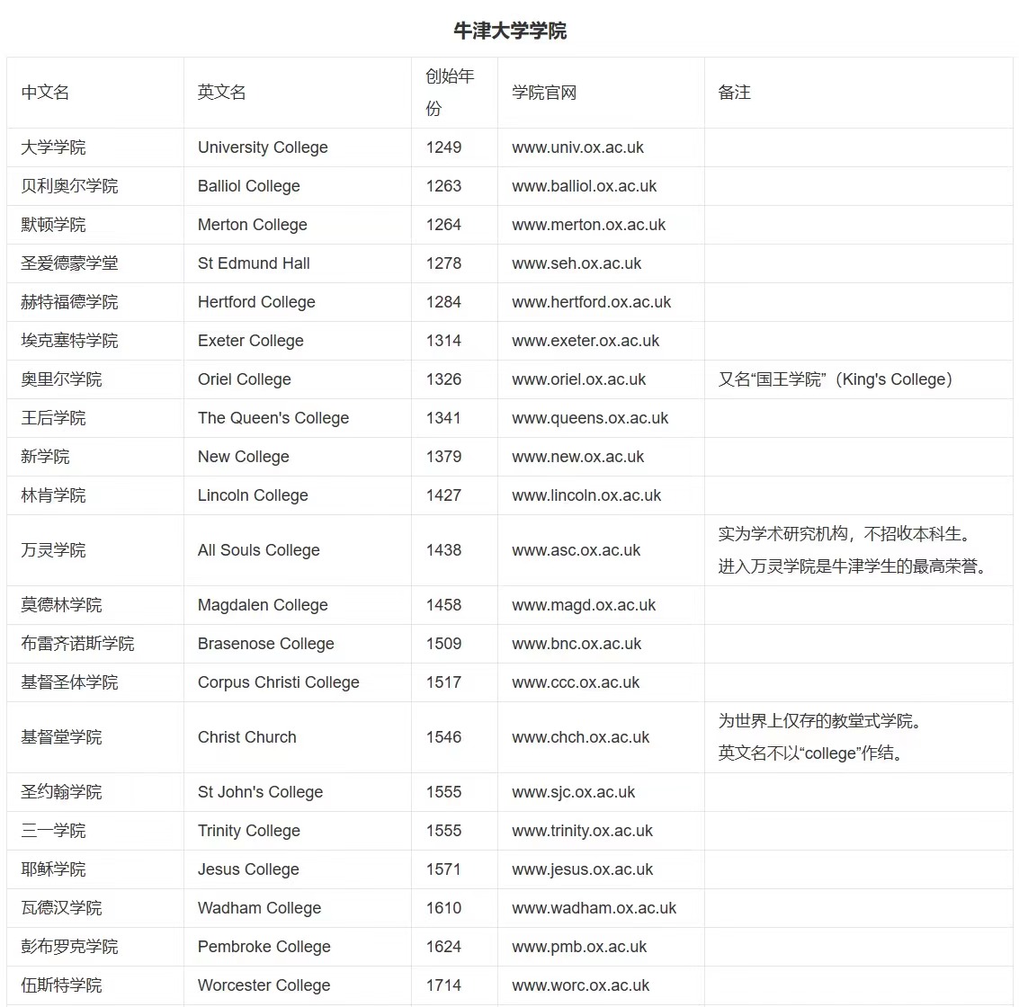 牛津共有39个学院,它们和学校的关系就像美国中央政府与地方政府的关系那样采用联邦制形式。每一所学院都由 Dean 和 Fellows 管理,他们都是各种学术领域的专家,其中大多数在学校都有职位。除此以外,还有6个准学院——称为“永久性私人学堂”(Permanent Private Halls),为各宗教教派所办——到如今还保留着它们的宗教特许状。在39个学院中,万灵学院没有学生,只有学者(包括访问学者)。各学院规模不等,但都在500人以下,学生与学者均来自不同的专业学科。(下图为部分学院展示)