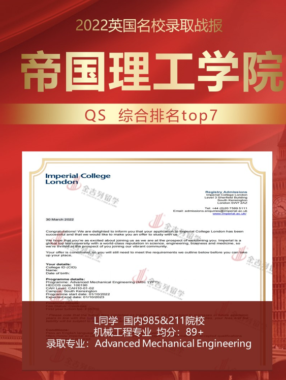 硕士项目(含授课型和研究型):帝国理工学院认可名单上国内大学本科毕业,平均分85分以上。对应英国学位要求为:最低二类A等荣誉学士学位以上。
