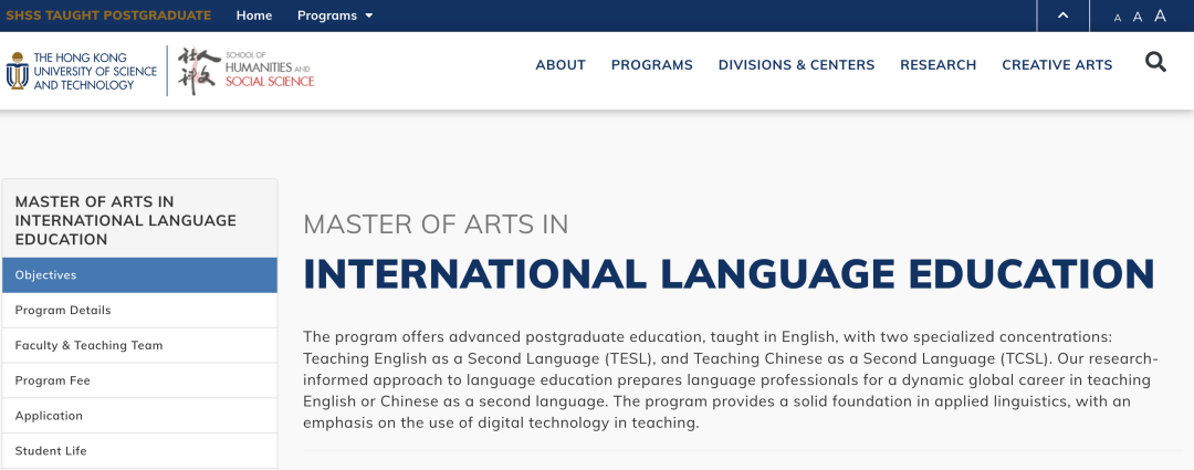 香港科技大学虽然没有开设专门的TESOL专业,但是人文社会科学院开设了国际语言教育硕士项目,该项目设有两个专业分支:英语作为第二语言教学(TESL)和汉语作为第二语言教学(TCSL)。