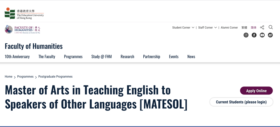 开设的TESOL旨在为学生提供最先进的TESOL研究、理论和实践基础,以满足专业发展需求,在亚洲及其他地区的一系列教育环境中的英语教师和其他 TESOL 专业人员。