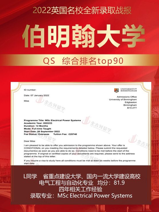 学历要求:高中毕业,平均成绩在80分以上,且完成一年预科学习,或已在中国读了一年本科,或通过英国A-level考试,或有IB成绩。