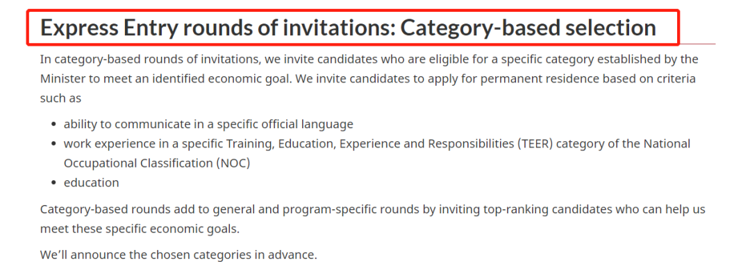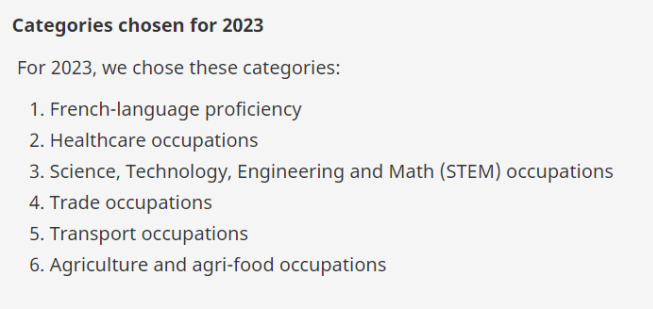 目前,移民局2023的定向邀请类别如下: