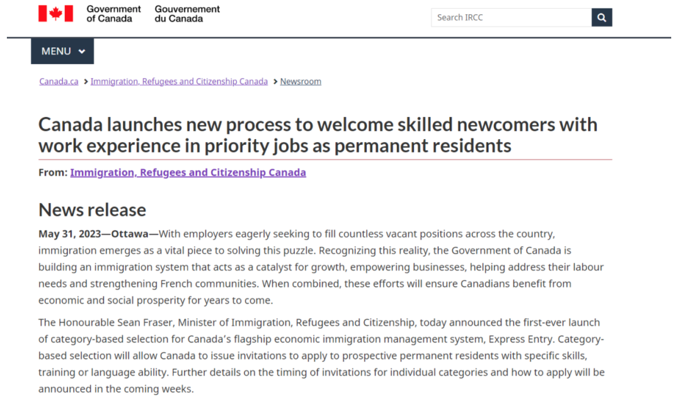 移民、难民和公民部部长肖恩·弗雷泽近期宣布,加拿大旗舰经济移民管理系统“快速通道”首次推出基于类别的选择。基于类别的选择将使加拿大能够向具有特定技能、培训或语言能力的潜在永久居民发出申请邀请。同时 EE 将继续通过一般和省提名计划特定轮次邀请获得省或地区提名的候选人。这些候选人已经证明他们拥有为该省或地区的经济做出贡献的技能、教育和工作经验。