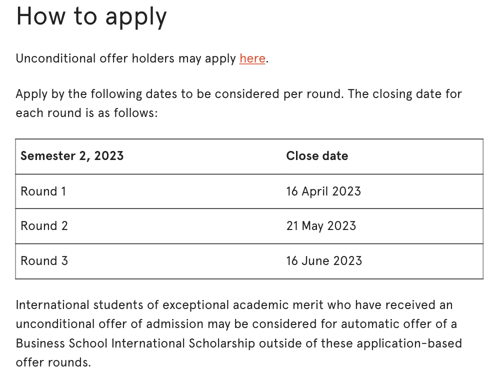 已收到无条件录取通知书的具有特殊学术成绩的国际学生可能会考虑在这些基于申请的轮次之外自动获得商学院国际奖学金。
