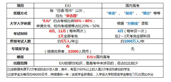 日本留学生考试又称为EJU,题目多数是选择,数学是填空,日语包含写作。主观题很少,整体来说比高考简单。