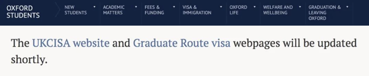 牛津大学表示,英国内政部近日将在官网上更新“PSW”签证申请相关信息。