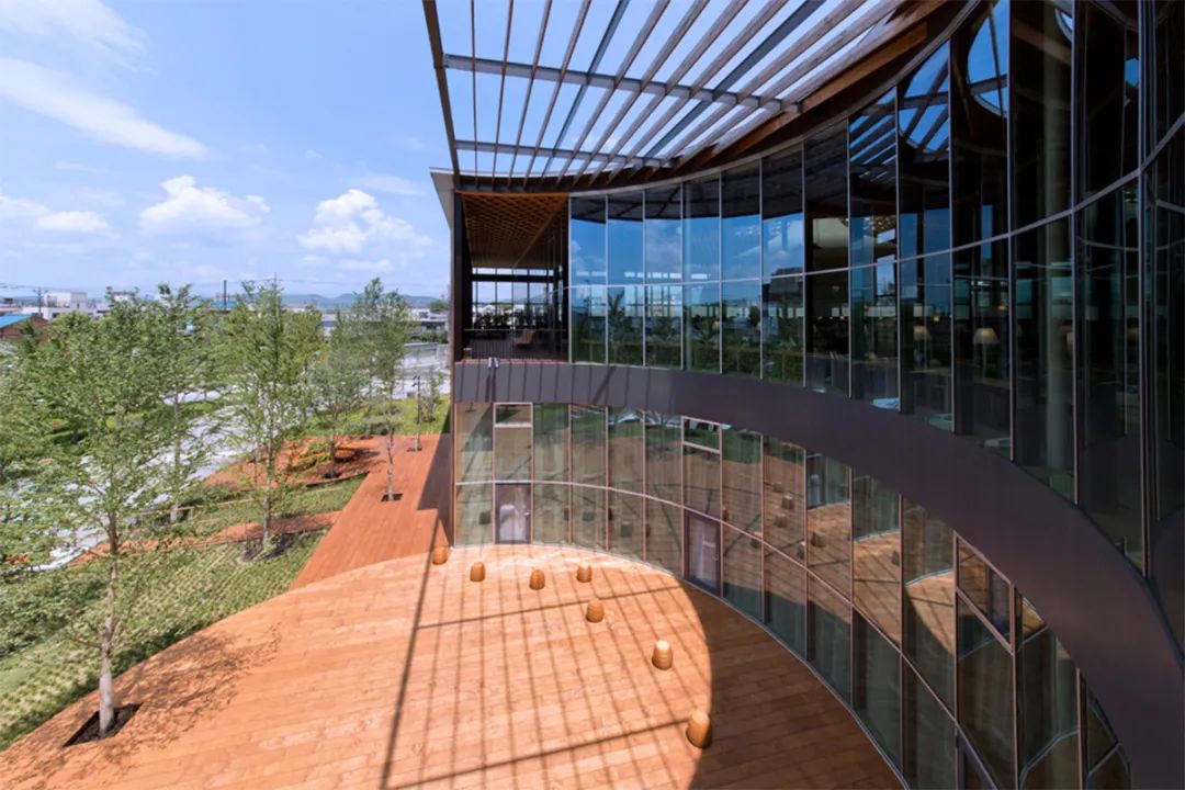 歧阜市立中央图书馆位于歧阜市中心部的“大家的森林·岐阜媒体宇宙”之中,这是一座由建筑大师伊东丰雄设计、集图书馆及展示馆为一体的复合型文化设施。整座建筑拥有优美的波浪型屋顶,深色调的外壁上,大片的玻璃与金属框架垂直交错,拥有一种别致的格调感。