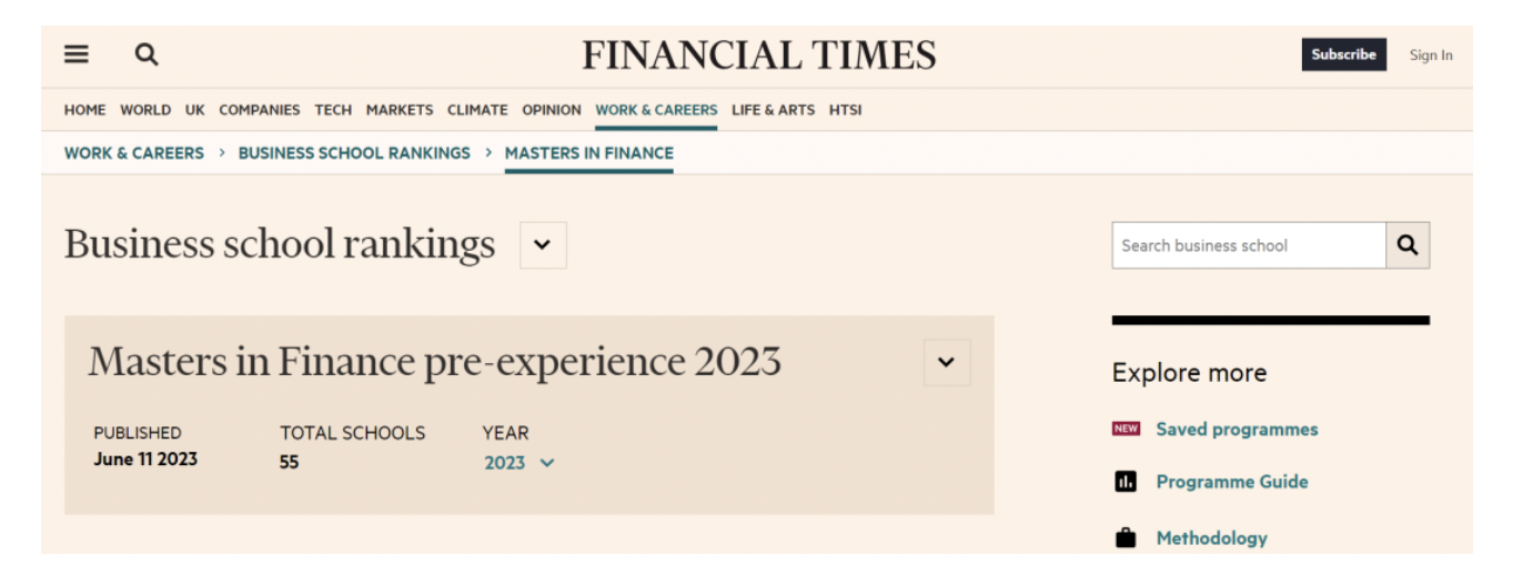 《金融时报》是世界领先的商业新闻机构,自2011年开始推出金融硕士项目排名,是目前全球最权威的金融硕士项目排名之一。