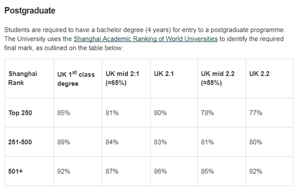之前英国大学多数是参考的 ‘网大排名’,但由于网大排名更新较慢,也被英国校方所诟病,很多院校已经不再以此标准作为参考了。
