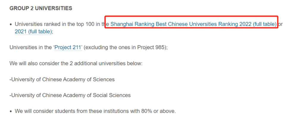 Group 4:要求软科2022或2021中国大学排名中501-800院校,均分85%以上,并同时具有出色学术背景,优异的专业成绩,以及(或)相关的工作经验