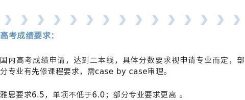 虽然申请上面这些大学都要以高考总分作为敲门砖,但语言成绩大家也不可忽视,譬如新南威尔士大学就要求托福分数在90至100之间,雅思成绩在6至6.5,个别专业可能要去到7至7.5才行。