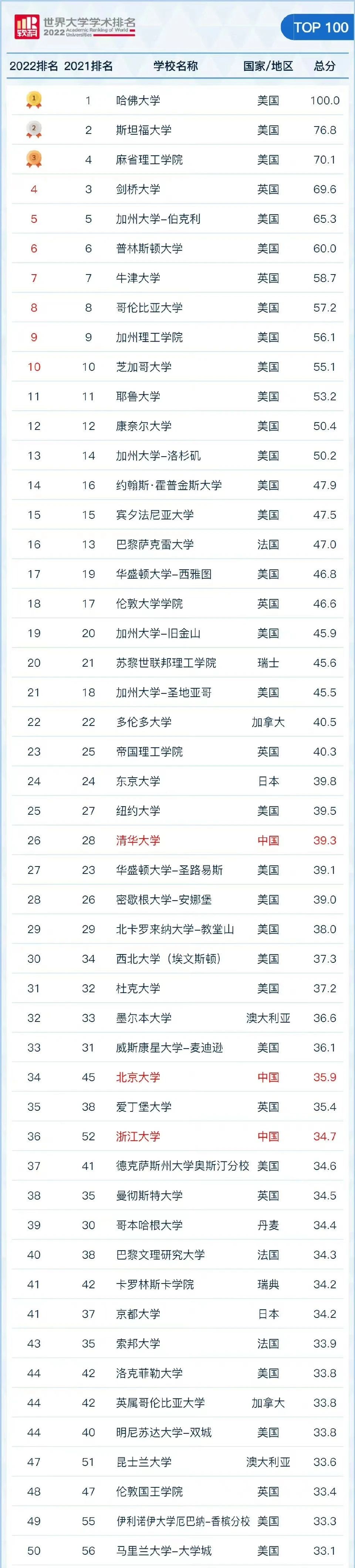 美国排名靠前的院校众多,根据2022软科世界大学学术排名,世界前十院校中,美国占8所,英 国占2所;世界前五十院校中,美国占28所,英国占7所, 中国和法国各占3所。