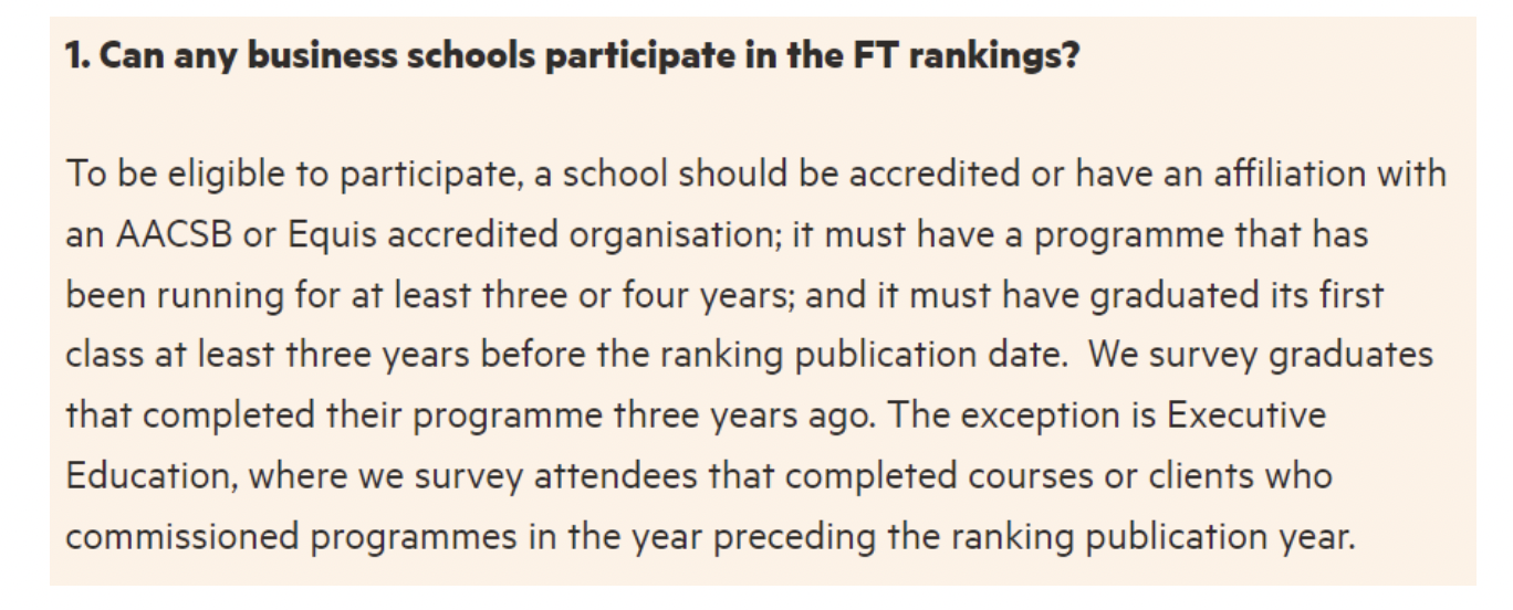 共55所商学院上榜 。 所有 参与FT商学院排名的院校需符合 :