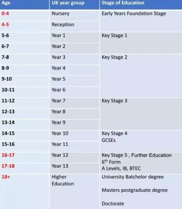 如果是私立教育体系,4岁的时候就可以入学Reception(可以理解为“学前班”)。英国小学(Year1-Year6),5岁就上小学一年级(Year1),11岁左右小学Year 6读完就毕业了。
