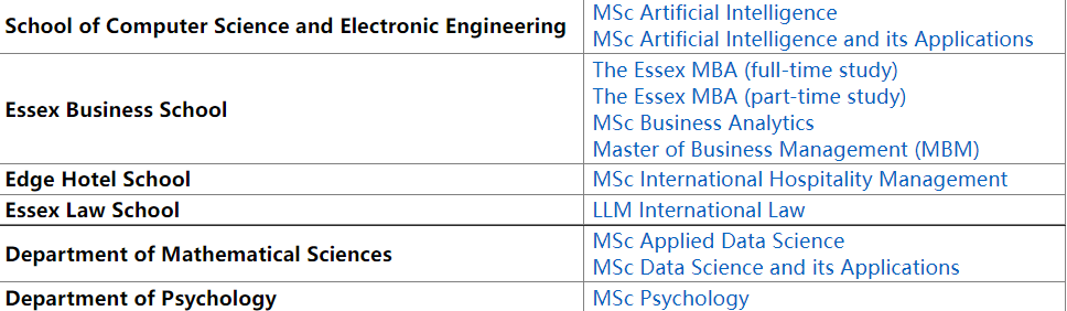 埃塞克斯大学下方专业 2024 年 1 月入学申请已开放