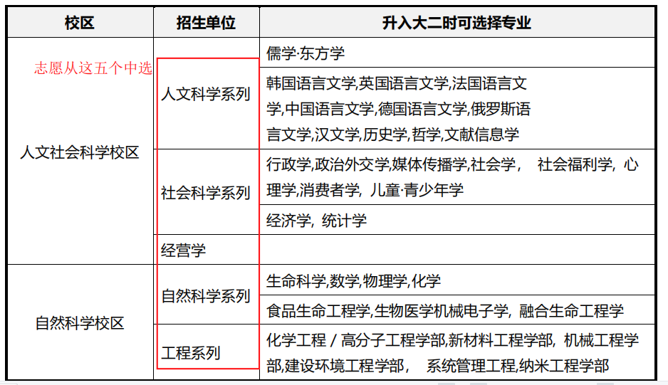 成均馆大学作为韩国前五的名校之一,开设的学科也是非常丰富。成均馆申请本科时需要注意的是先申请系别,到大二再选择细分专业。(可选两个志愿)