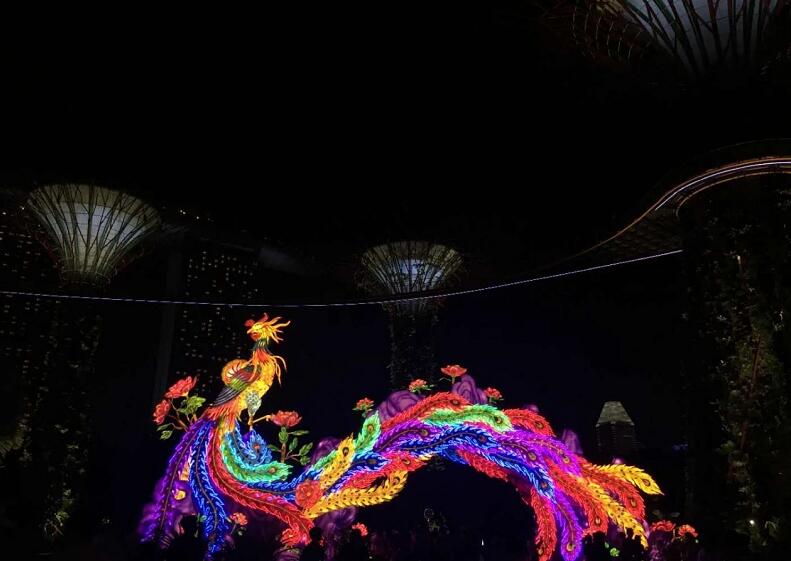鲤鱼、龙都出来了,怎么能缺少另一个重要角色,凤凰!凤凰自古以来就代表了祥瑞,而灯展中的凤凰尤其是其尾羽,更是五彩华贵,相信不少小朋友一定非常喜欢吧 ~