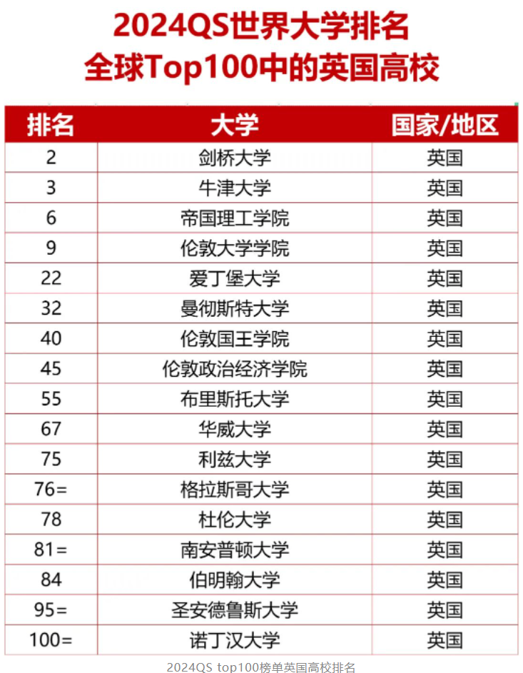 同样上升的还有布里斯托大学(上升6名,位列55)、利兹大学(上升11名,位列75)、格拉斯哥大学(上升5名,位列76)、杜伦大学(上升14名,位列78)、伯明翰大学(上升7名,位列84)、圣安德鲁斯大学(上升1名,位列95)。