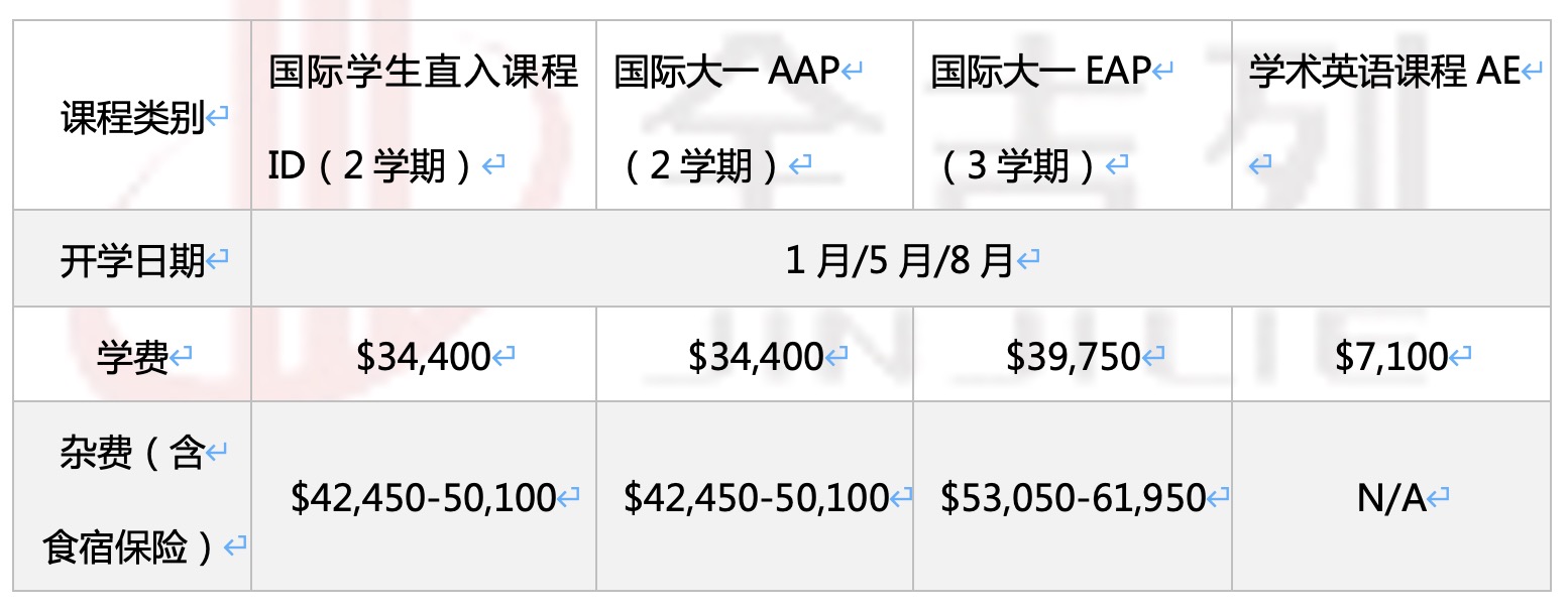 本科提供国际学生直入课程( ID )、国际大一课程( AAP&EAP )和学术英语课程 (AE) 。 硕士提供硕士学术直入课程( ID )、硕士衔接课程( MAP & Advanced MAP )和学术英语课程 (AE) 。