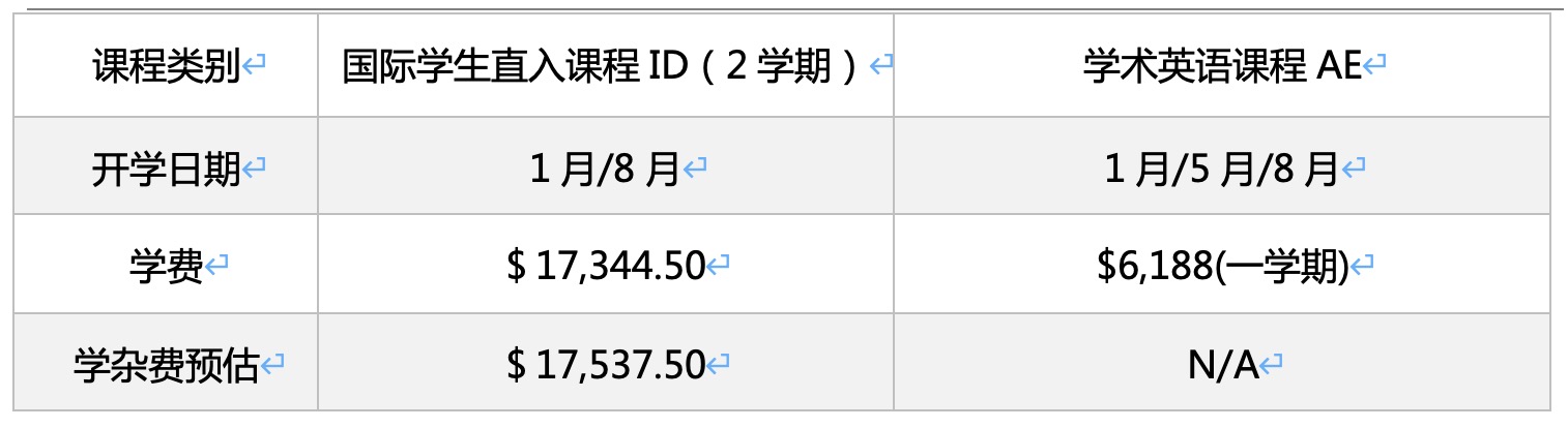 标准硕士直入课程 ID : $17,990/ 学期。