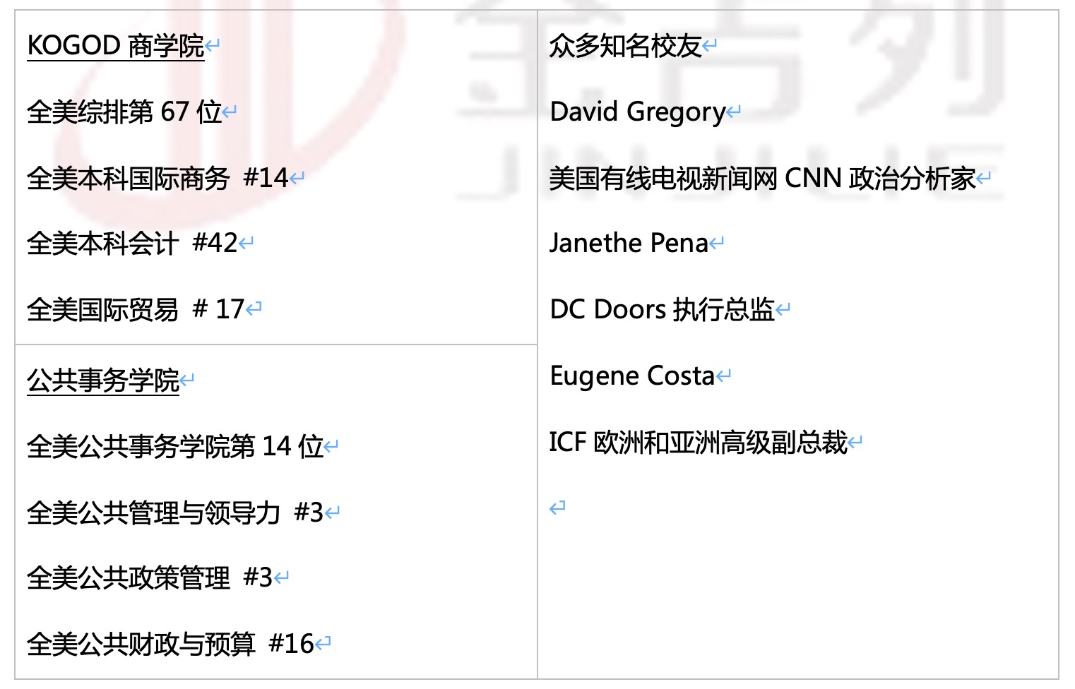 地理位置优越,坐拥首都华盛顿特区的一切便利条件;实习和工作机会众多;小班授课,有助于迅速提升学习能力和成绩;国际大一项目课程,课程选择灵活,帮助学生探索最真实的兴趣所在,迅速融入美国的学习生活;硕士衔接课程针对性强,更易升读及毕业;专业的学术英语培训,帮助学生更高效更迅速的达到美国大学的学术要求,而且提供奖学金。