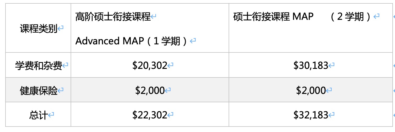 硕士衔接课程( MAP )、高阶硕士衔接课程( Advanced MAP ),以及学术英语课程 (PSE) 。