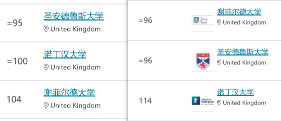 排名最大的变化是谢菲尔德大学和诺丁汉大学: