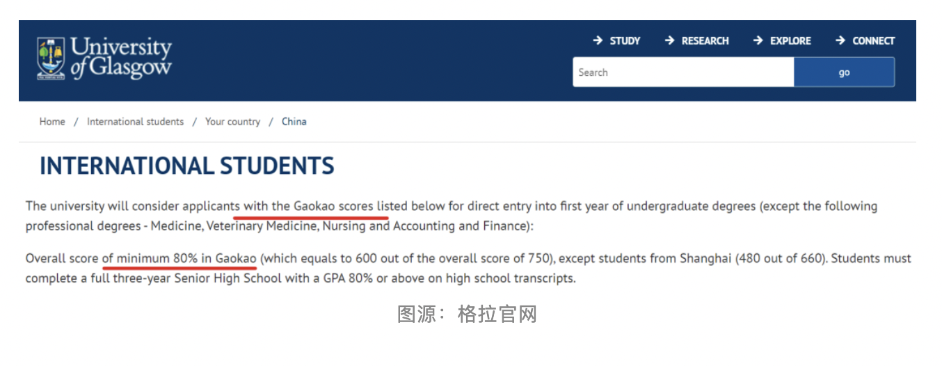 - 只有理学院(Faculty of Science)接受高考成绩直接申请 ;