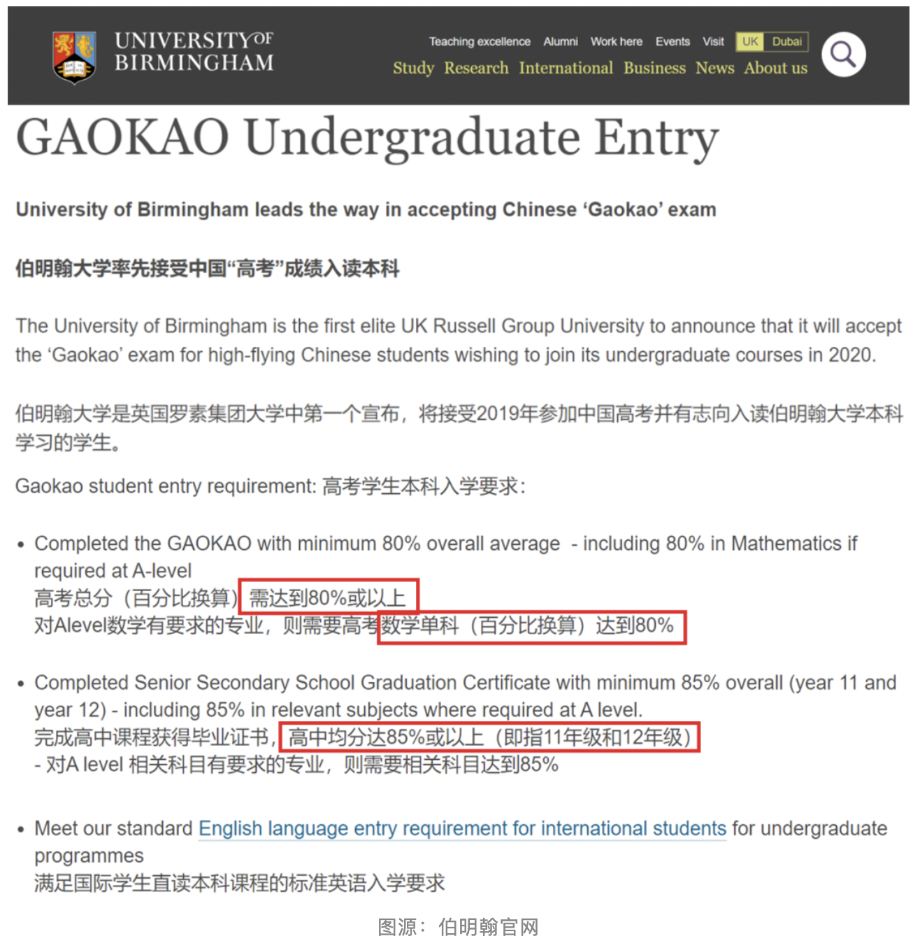 - 一些特定科目除高考外还要求数学A-Level分数;