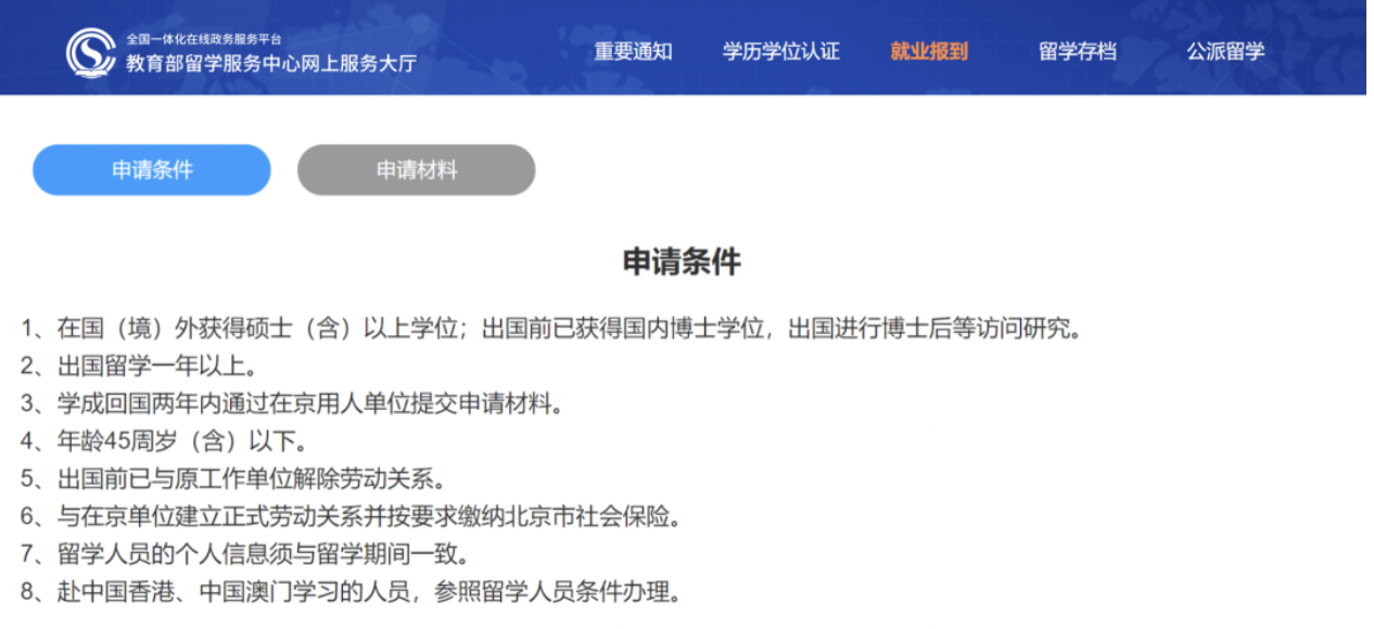 - 时间:出国留学1年以上 (参照护照出入境时间,网课则以毕业时间为为准),学成回国两年内通过在京用人单位提交申请;