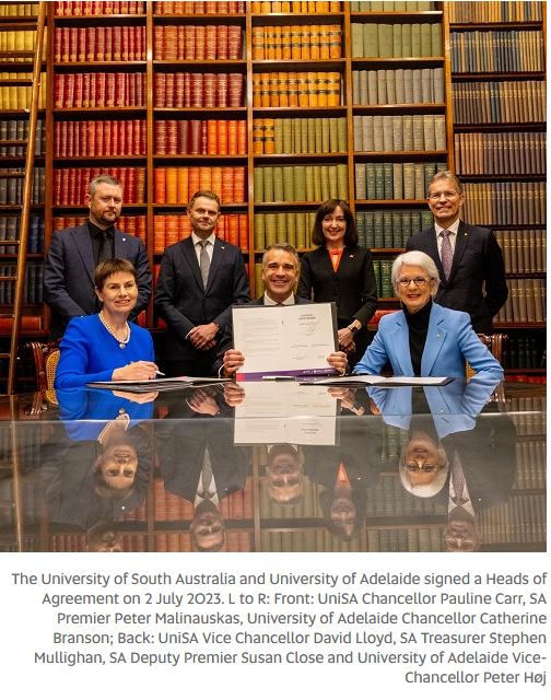 阿德莱德大学和南澳大利亚大学于2023年7月2日达成了正式协议,共同支持南澳大利亚州政府创建一所联合新大学。新的大学名为Adelaide University,将于 2026 年 1 月投入运营。合并后的新大学,将增加学生数量和研究能力。