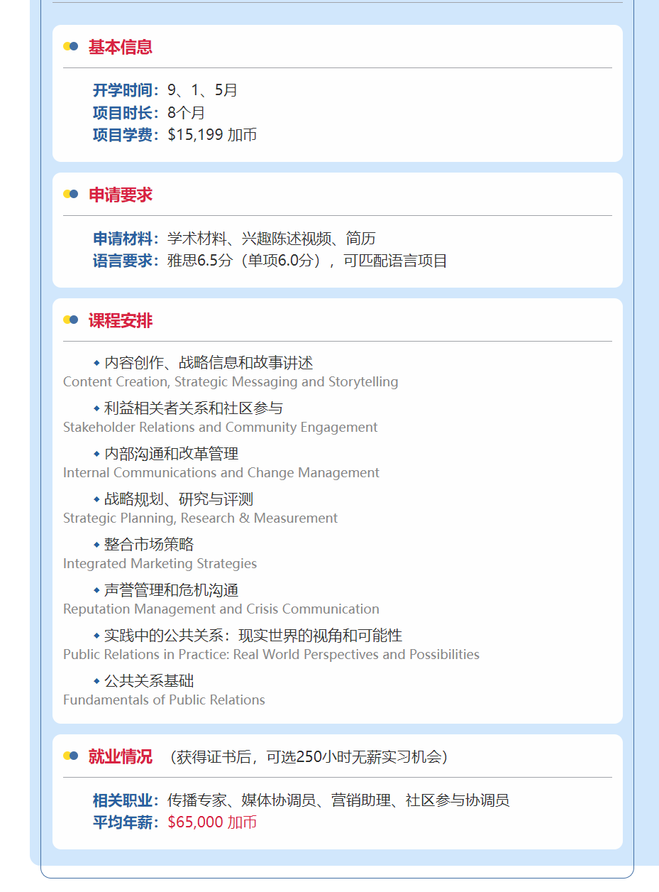 03 众所周知,大部分加拿大的硕士申请需要本科背景一致。如果你不喜欢自己的本科专业,但又不符合硕士跨专业的要求,通过读研文也更容易换到喜欢的专业,因为大部分研文专业对前置课程的要求没那么苛刻。