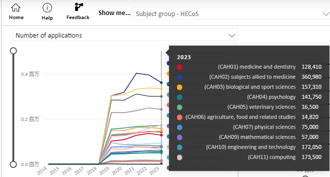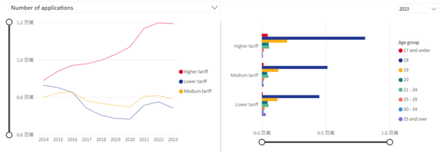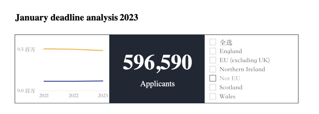 2023年UCAS申请总人数为596590人,去年为610730人,相较于去年减少了14140人!