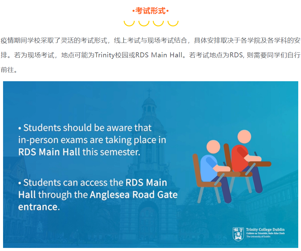 同学们可登陆my.tcd.ie查看个人的考试时间和考号。