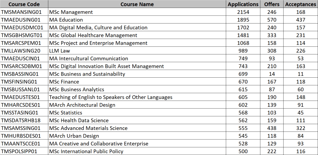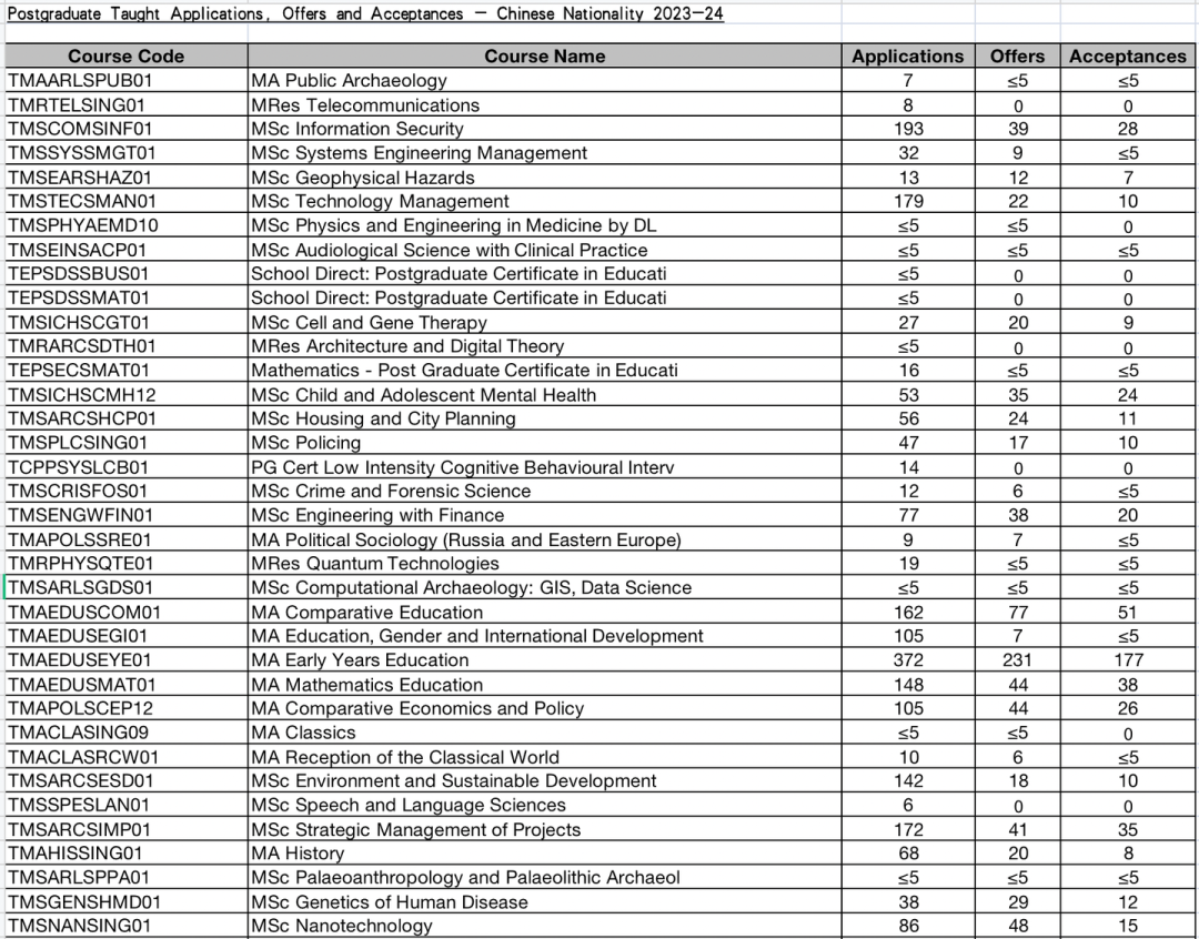 UCL也公布了23fall硕士入学申请的官方统计数据,作为一所对中国留学生非常友好的院校,数据信息量也是非常详细,各位同学要仔细看下去啦~